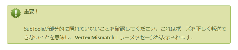 トランスポーズマスターをかける前に全てのサブツールに非表示部分がないか確認。