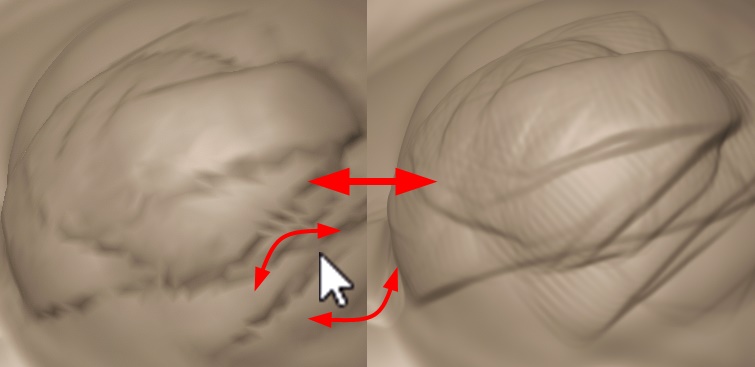 だがしかし!ようやくこのチラツキをOFFにして、常時「スカルプト中の見た目そのままで視点回転させられる」方法を発見。これで安心。